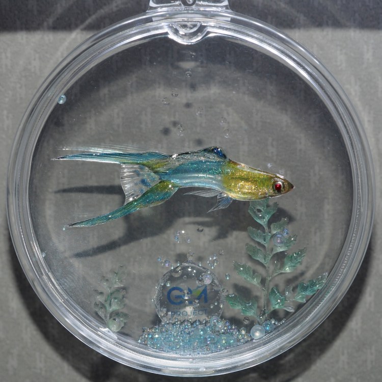 而由於皆是手工製作的,所以即便是同一尾魚的模型,也會有些微的差異。同時,搭配的水草背景也會有所不同,所以您購入的每一枚,都會是獨一無二的存在。