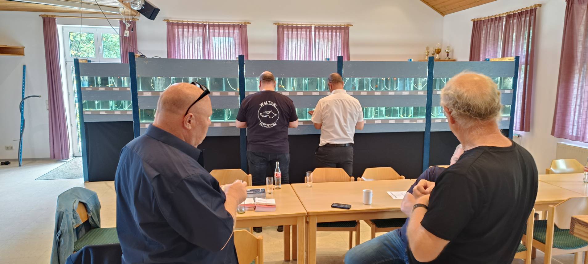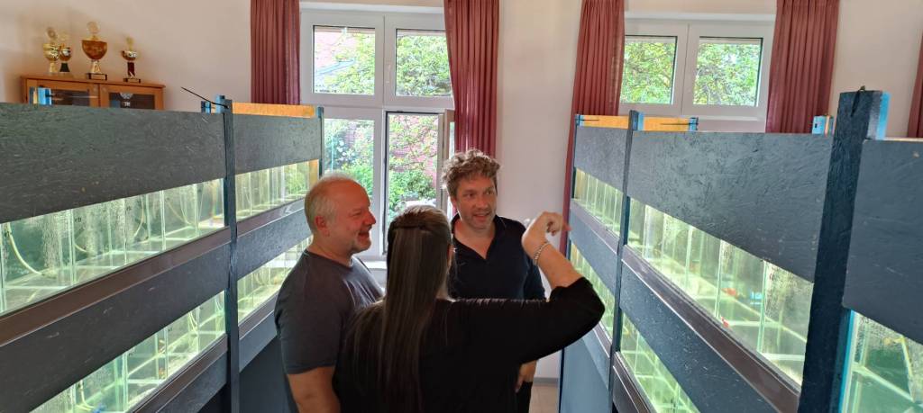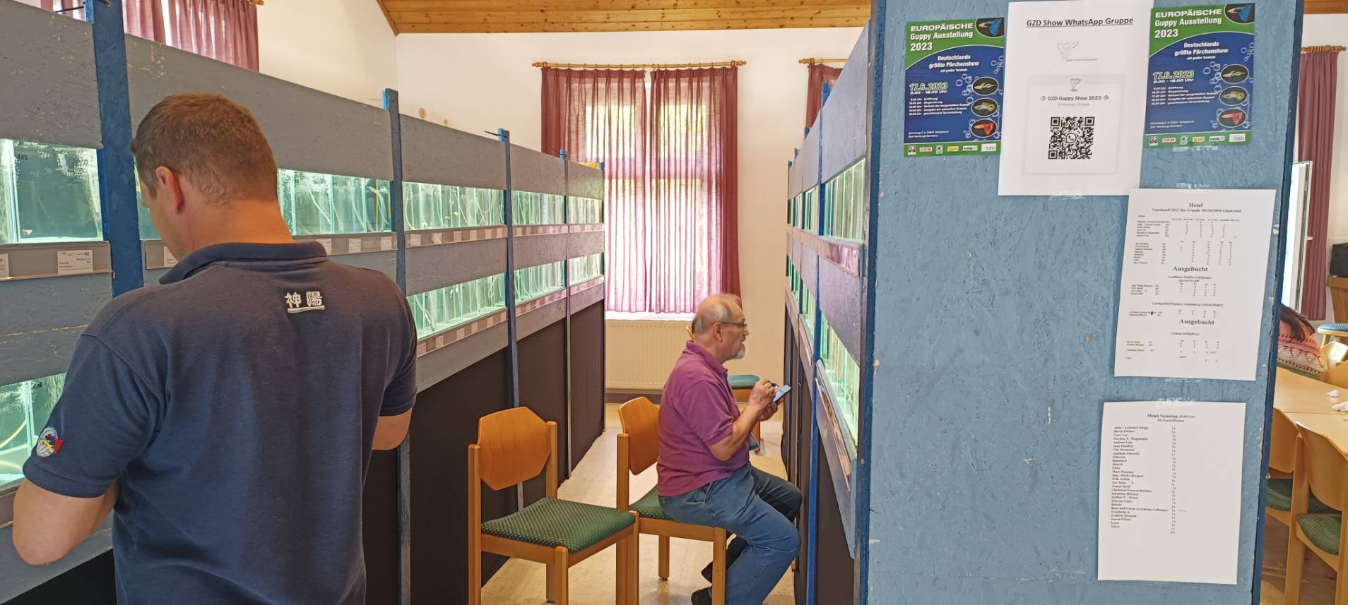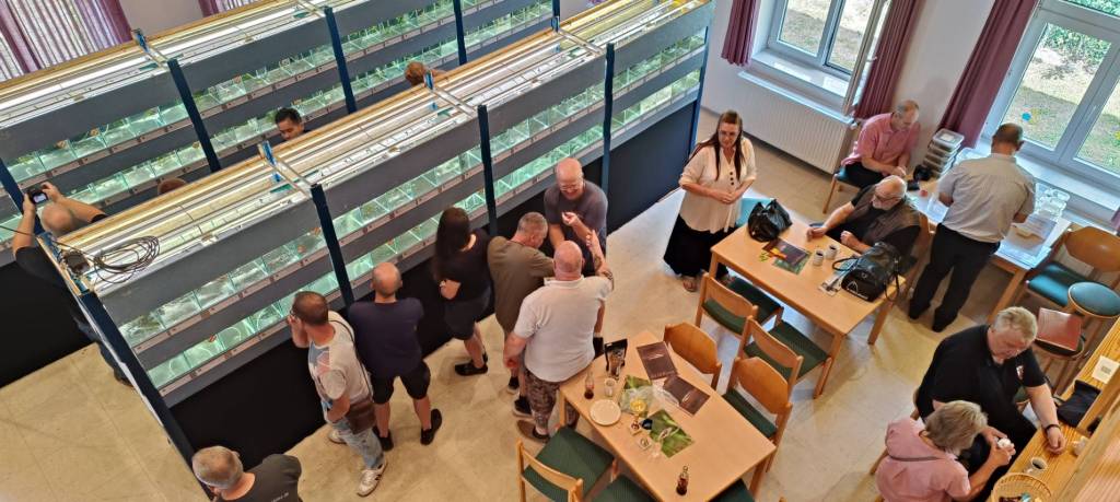 而到了比賽會場後,德國俱樂部GZD早已經在前一天就將展示魚缸都搭建完成,所以當日(2023/6/15)就是全天在等候魚隻入缸。那德國賽事想參賽,是先採取預先登記制,因為現在魚缸數量只會準備216個,所以在比賽前就需要跟賽事主辦人booking好參賽魚隻數量。雖然一開始註冊就有超過200組魚,不過最後因為各種原因,最終實際參賽組數為193組,但這也是一個很驚人的數字。