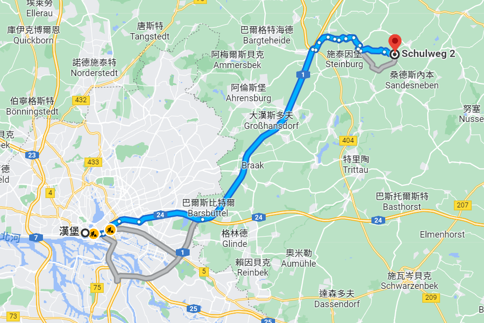 德國比賽會場的位置,是在北方大城漢堡(Hamburg)旁的一個小鄉村:席爾福斯特(Schiphorst),開車大概要40分鐘左右的距離。許多歐洲的城市發展就是這樣,很多人會到主要城市上班,然後就住在車程約1小時以內距離的周邊村落,概念上就類似到台北上班,然後住在桃園或者宜蘭這樣吧!那我則是搭機14小時後,到南方大城法蘭克福,再搭車6個小時到會場。說真的,已經很久沒有這樣長途旅行了,這是在疫情後的第一次,也稍微感受到一點歲月的無情了。