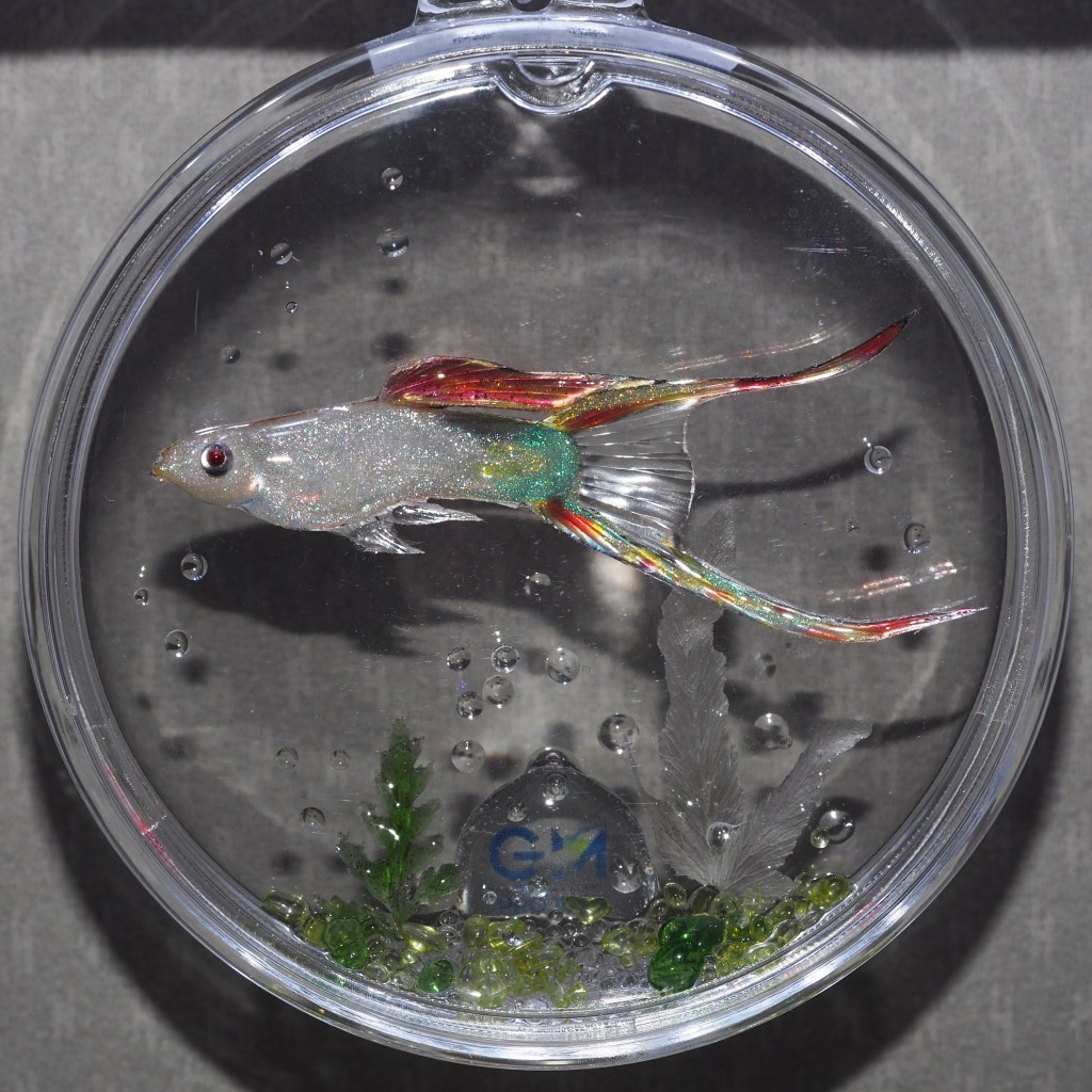 而由於皆是手工製作的,所以即便是同一尾魚的模型,也會有些微的差異。同時,搭配的水草背景也會有所不同,所以您購入的每一枚,都會是獨一無二的存在。